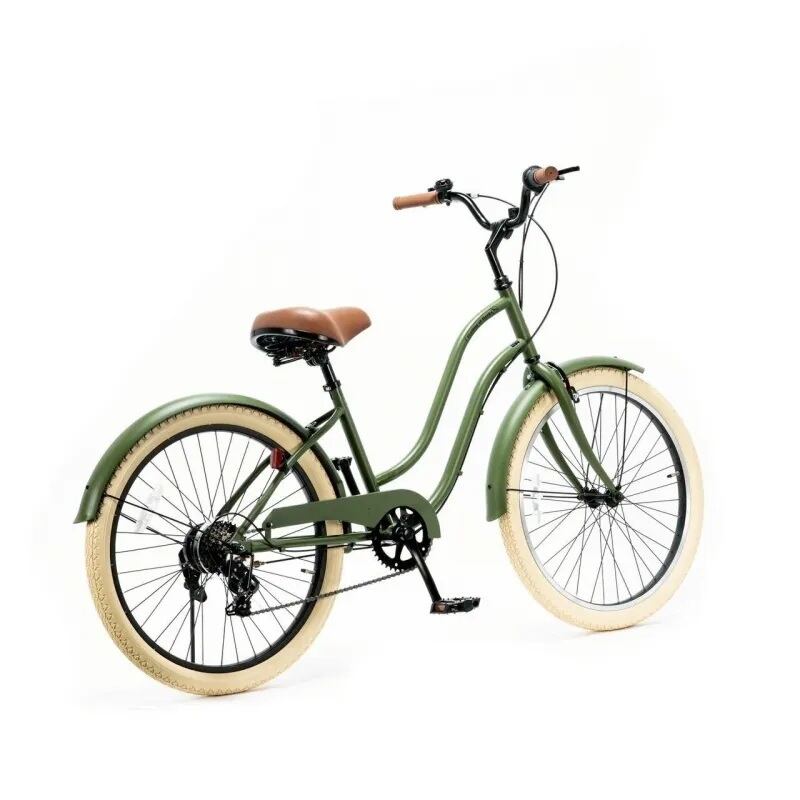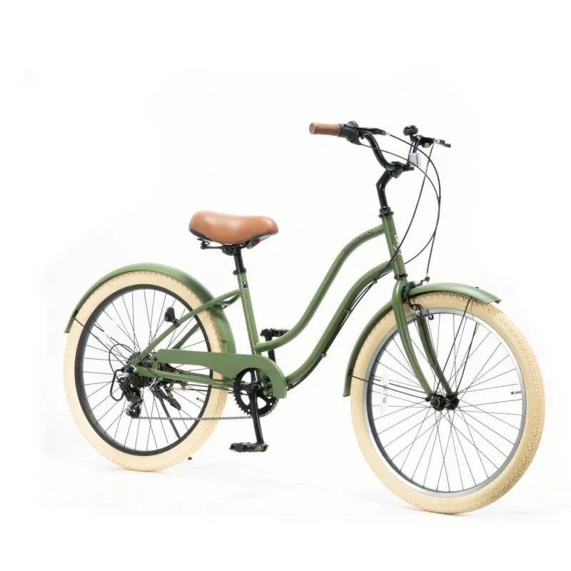 中高生以上の小柄な女子をターゲットにしたモデル。トップチューブを下げたダブルループフレームで跨ぎやすさを重視しました。 クリームタイヤを装着し、キッズバイクとは一味違う落ち着いた上品なスタイルに仕上げました。