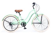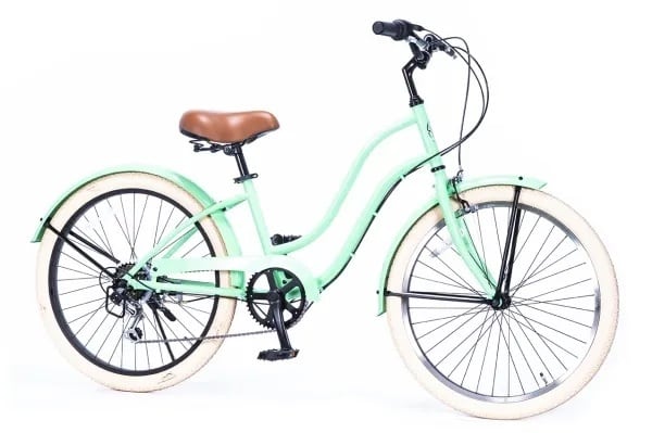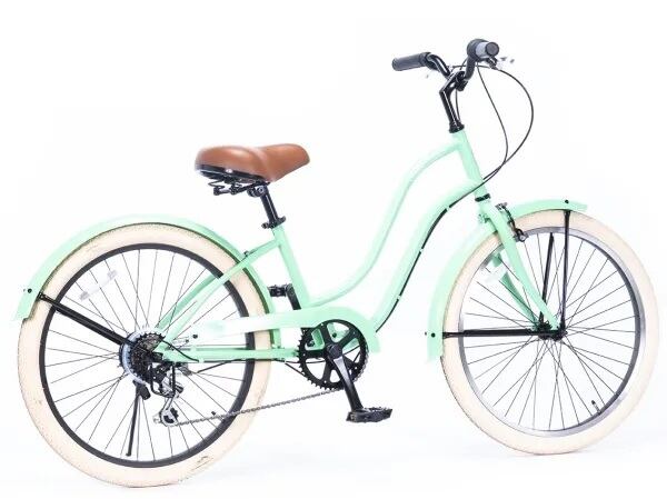 中高生以上の小柄な女子をターゲットにしたモデル。トップチューブを下げたダブルループフレームで跨ぎやすさを重視しました。 クリームタイヤを装着し、キッズバイクとは一味違う落ち着いた上品なスタイルに仕上げました。